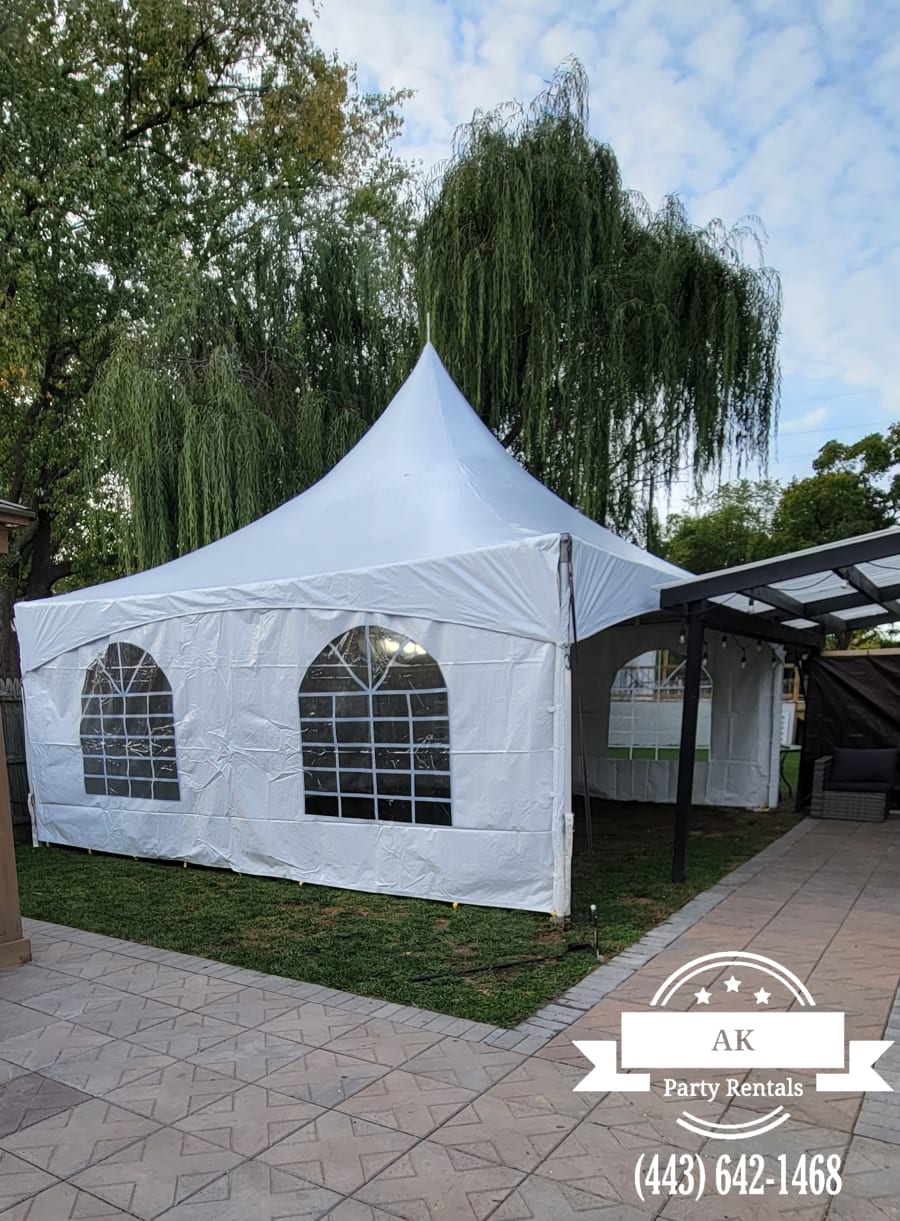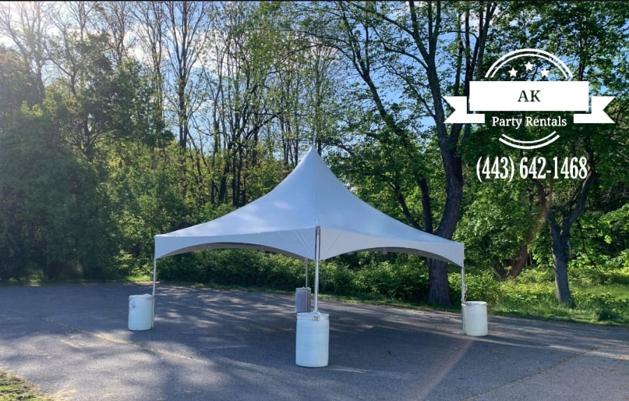 Set up on hard surfaces (concrete, paved areas) require weights to hold tent down, water barrels are $12.00 each to rent (add separately), water access must be onsite.