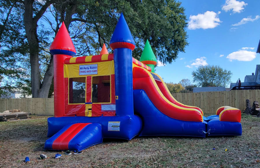 Our Blue & Red Dry Combo With Slide Is Perfect For Younger Kids Who Love To Have Lots Of Fun. Jumping Is Fun But Sliding Down Makes You Smile When You Splash.