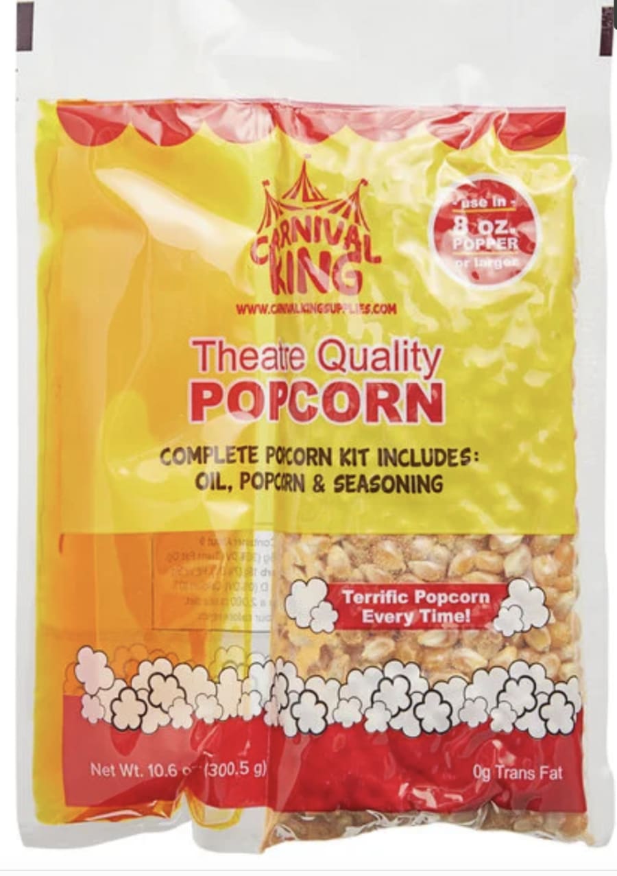 Popcorn Kit makes 10-15 bags of popcorn.